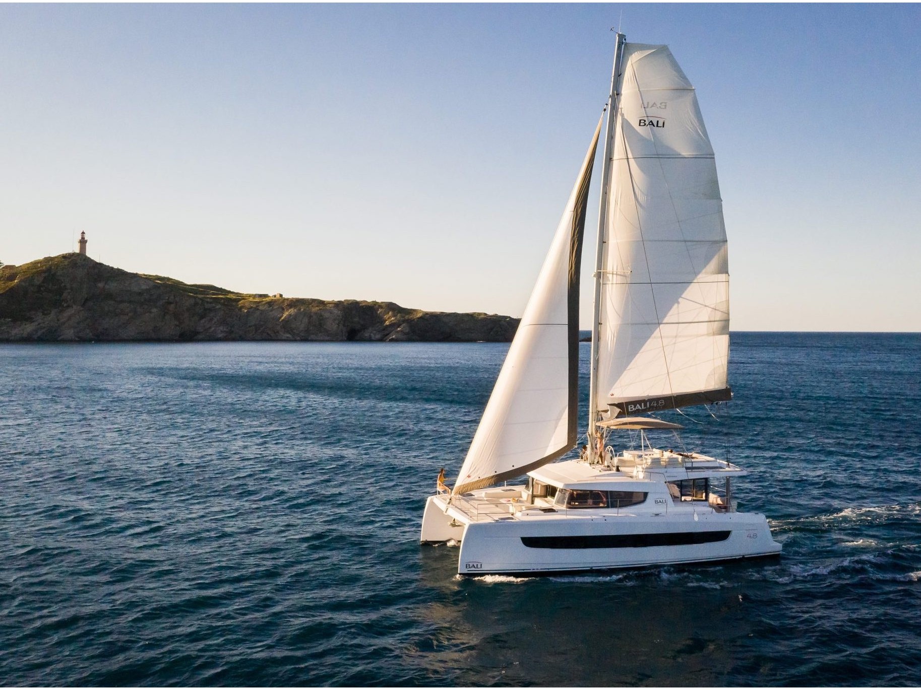 Catamarano, anno di costruzione:2022, Marina d'Arechi, Salerno, modello: Bali 4.8 Agatirno, cabine: 6, WC: 6, portata persone: 11. L’imbarcazione è dotata di equipaggiamento charter standard che include il pilota automatico, salpa ancore elettrico, Bimini top, sprayhood/paraspruzzi, plotter GPS, ecoscandaglio, sensore del vento, log, tender, Wi-Fi.