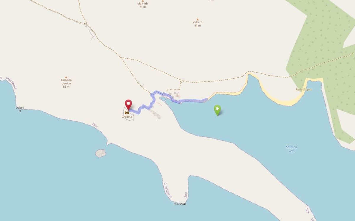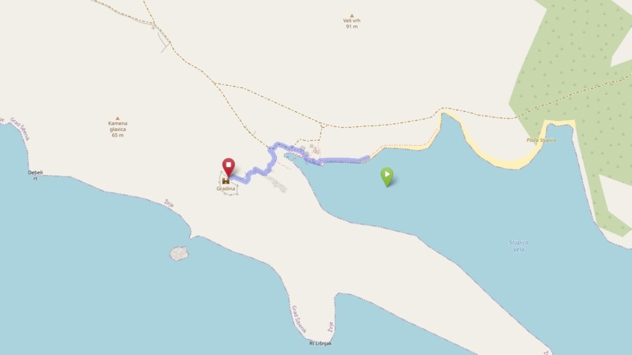 Il modo migliore è raggiungere Žirje in barca dalle marine vicine sulla terraferma. Si consiglia di arrivare e ormeggiare nella baia di Vela Stupica (ancoraggio/boe), poi proseguire a piedi fino a Gradina.