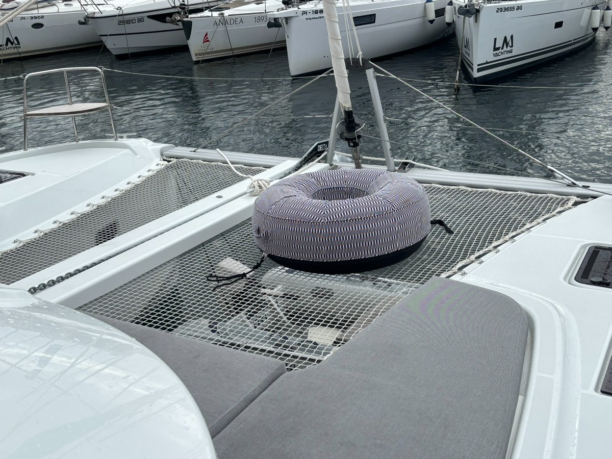 il ponte di prua è parzialmente coperto da rete e c’è spazio per materassini relax