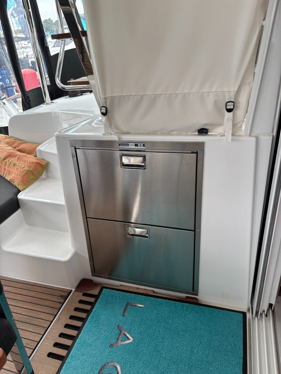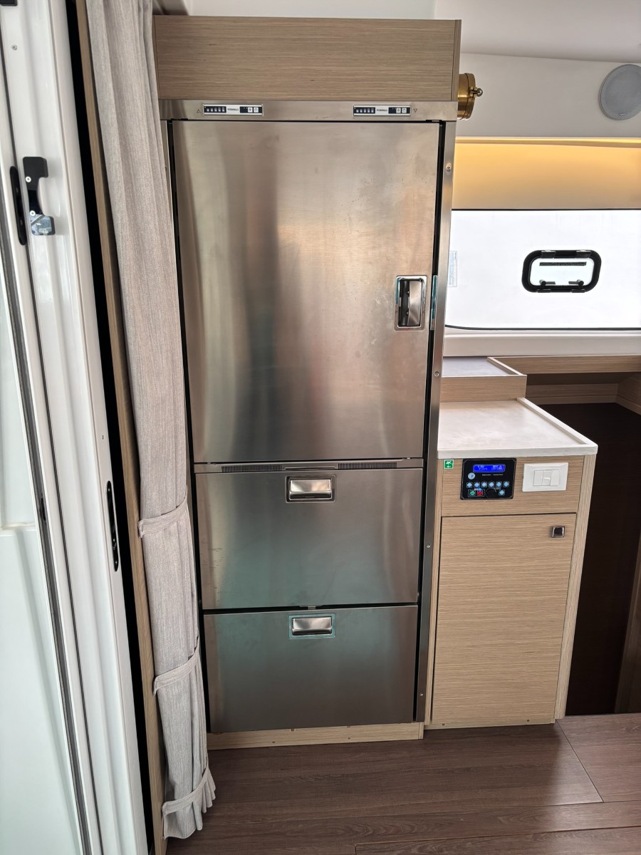 A bordo sono molto apprezzate le cose che semplificano la quotidianità: grandi frigoriferi, una cucina ben organizzata con abbastanza spazio per riporre e una doccia a poppa dopo il bagno. Piccole cose che vengono utilizzate ogni giorno – e che rendono la vacanza più semplice e comoda.